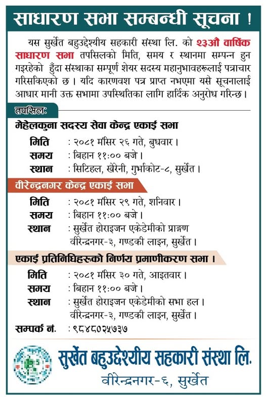suresh । २६ मंसिर २०८१, बुधबार १४:०८