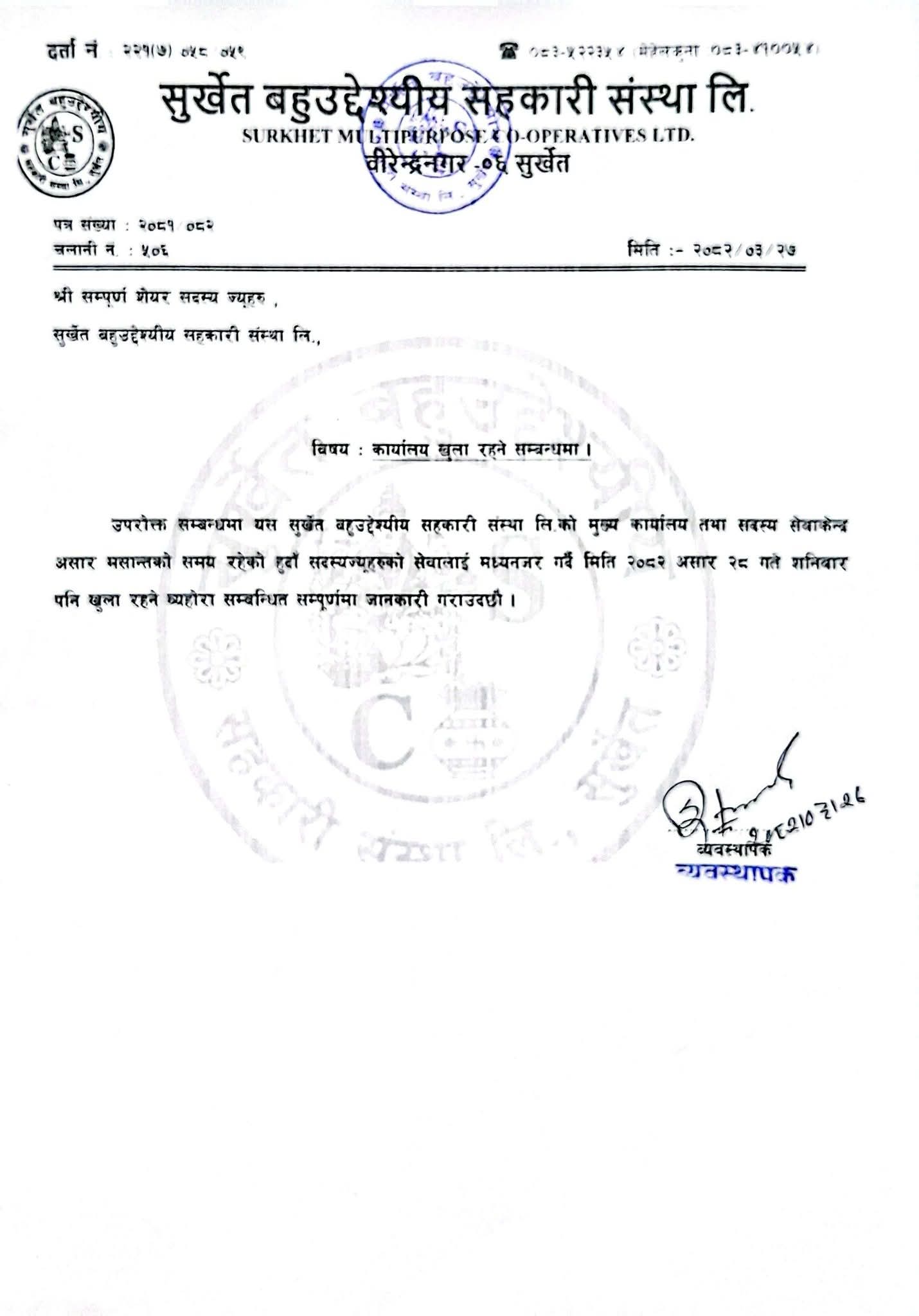 Surkhet Multipurpose Co-Operative Ltd. Surkhet